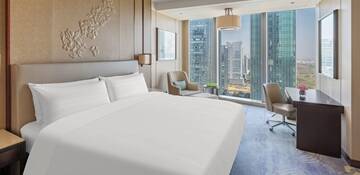 Shangri-La Yiwu is located in the city's landmark building - Yiwu World Trade Center, in the core area of the financial business district. It is a multi-functional urban complex integrating residential, commercial, office, shopping and entertainment facilities. The main building stands at a height of 215 meters, which is a homophone for "Love Yiwu". Shangri-La is across the street from the first zone of Yiwu International Trade City and is adjacent to the International Expo Center and Meihu Gymnasium.